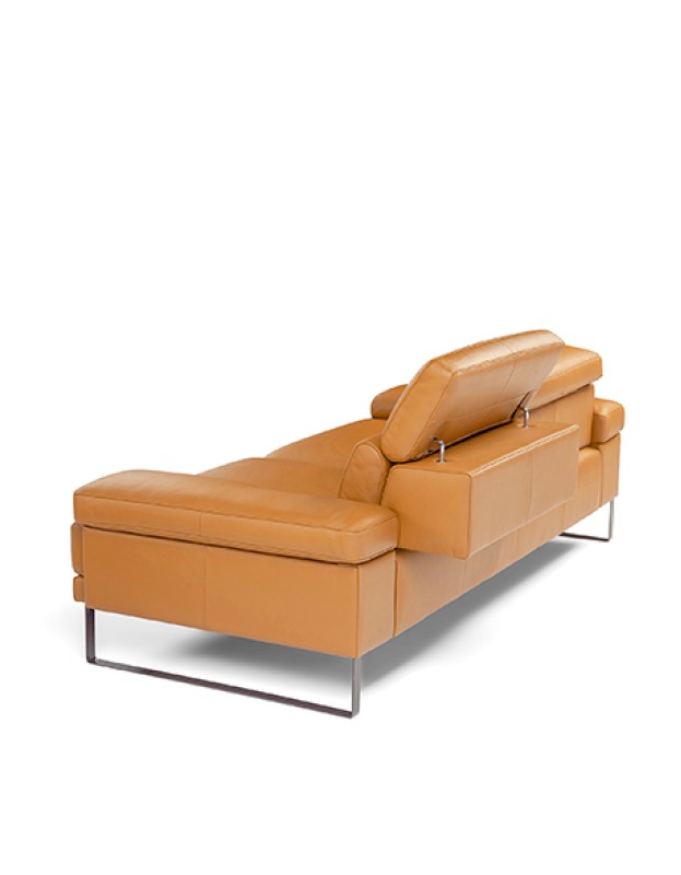 The framework is made from solid pine wood. The spring system consists of zigzag springs attached. The seat cushion is in high density polyurethane foam. The adjustable headrest can give headrest. Designed with a Backrest movable for seating. Double side stiches provides extra strength to under stress conditions. SS legs, in the same finishes upholstered in italian leather/PU/Fabric.